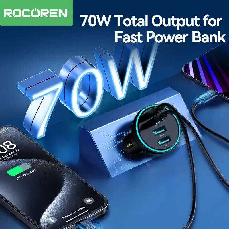 Kfz Ladegerät 70W Zigarettenanzünder Auto Ladegerät für iPhone, Samsung rocoren