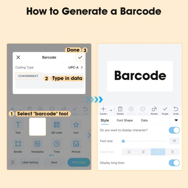 Diese App ist einfach zu bedienen und dennoch wirkungsvoll. Sie können drahtlos verbinden, Änderungen vornehmen und Drucke direkt von Ihrem mobilen Gerät aus vorbereiten. Die Print Master-Anwendung bietet eine Vielzahl von kostenlosen, vorgefertigten Etikettenvorlagen, die für unterschiedliche Bedürfnisse geeignet sind, um Ihre Produktivität zu steigern. Außerdem haben Sie die Möglichkeit, Ihre eigenen Vorlagen zu erstellen und zu speichern. Sie umfasst über 30 Schriftarten und mehr als 40 Rahmen für personalisierte Etikettengestaltungen.
