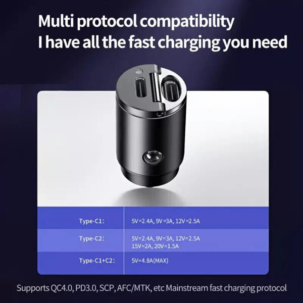 Das Joyroom Kfz-Auto Ladegerät mit Zigarettenanzünder bietet Ihnen die Möglichkeit, unterwegs Ihre Geräte schnell und effizient aufzuladen. Mit zwei USB Typ C Anschlüssen und einer Leistung von 60W ist es besonders vielseitig und leistungsstark. Das Ladegerät ist kompakt, langlebig und verfügt über eine breite Kompatibilität mit verschiedenen Marken wie Samsung, Apple, Huawei und mehr. Ideal für den Einsatz im Auto, sorgt dieses Ladegerät dafür, dass Ihre Geräte stets einsatzbereit und geladen sind.